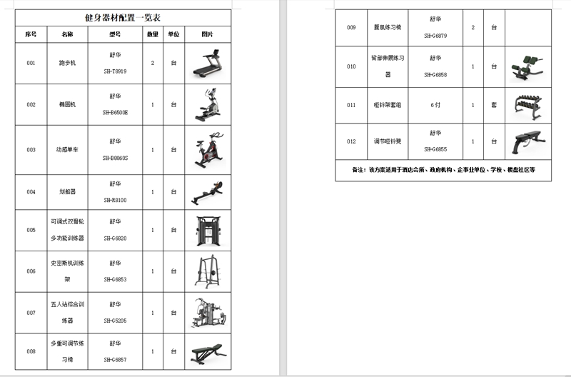 健身器材配置说明
