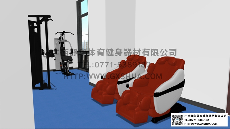 由于企业单位健身房的不规则性,根据场地、职工需求、整体预算,有氧器材区域配置球王会跑步机2台,椭圆机、动感单车、划船器各1台,满足职工的日常有氧训练需求,有效地提升心肺功能;力量器械配置单人站综合训练器、小飞鸟,满足使用者全身锻炼的需求;自由力量区域配置史密斯机、哑铃套组、腹肌板满足多样化训练需求,促使健身训练更丰富,休闲区配置按摩椅,可以促进血液循环,让员工使用按摩椅放松身心,可以能够有效缓解工作压力。